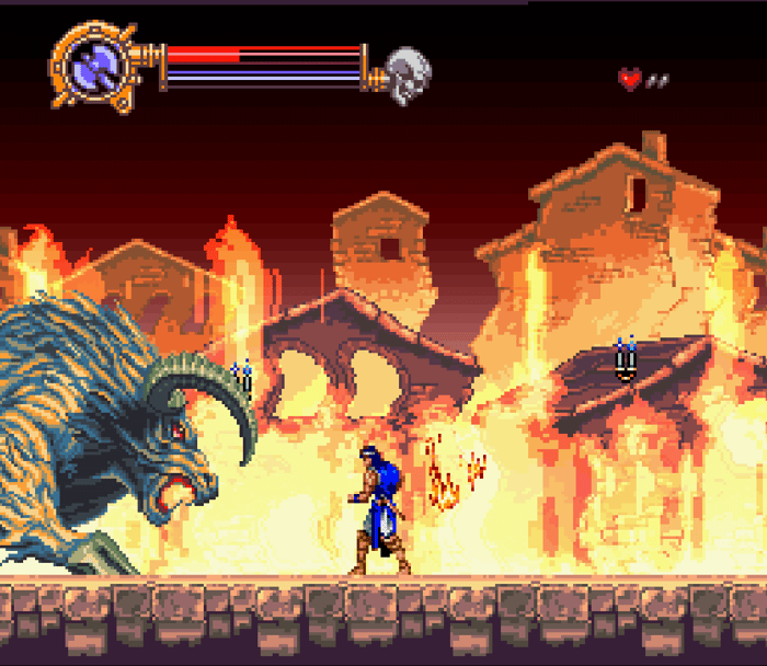Ahh, finally a category that's an easy call to make. Castlevania: Dracula X may have all the style in the world, but when it comes down to actually playing the game, there’s no question in my mind that Bloodlines is the superior experience. Take the stages I mentioned earlier in the graphics comparison for example. The flames in the background in Dracula X are amazing looking, but they're just window dressing.