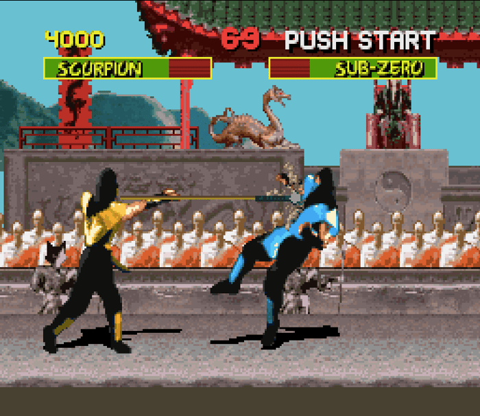 Sub-Zero is the clincher, though. This is THE iconic fatality from Mortal Kombat. He rips your head and spinal cord out. It’s there on Genesis, but replaced by something else on SNES. He freezes you, then shatters your frozen body. It’s a move that was officially included in Mortal Kombat II, and makes a ton of sense given the character's abilities. It also looks great, and I love it. But no matter how cool it is, it’s not the iconic head rip.