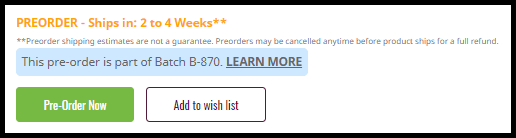 A: Yes, under the PRE-ORDER notice of the product's page there is a notice stating which batch this product pre-order is currently part of. You can click on the LEARN MORE link to get more information regarding this pre-order like what percentage of this batch is still available. See Fig. 1.