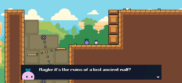 Dadish 4 doesn’t reinvent the wheel, even if on the surface it looks a bit different. There’s a new purple protagonist in town! You play as Dadish Junior looking for his kidnapped father. Dadish himself has been kidnapped by the HOA. Yes, the Homeowners association. He had an outstanding balance of around $30, so they kidnapped him with the aim of eventually murdering him for his transgressions. But don’t worry, DJ plays identically to his father, so much so that if you find all the secret stars in the game, you can play as Dadish, complete with updated text at the end of every level to reflect the character change.