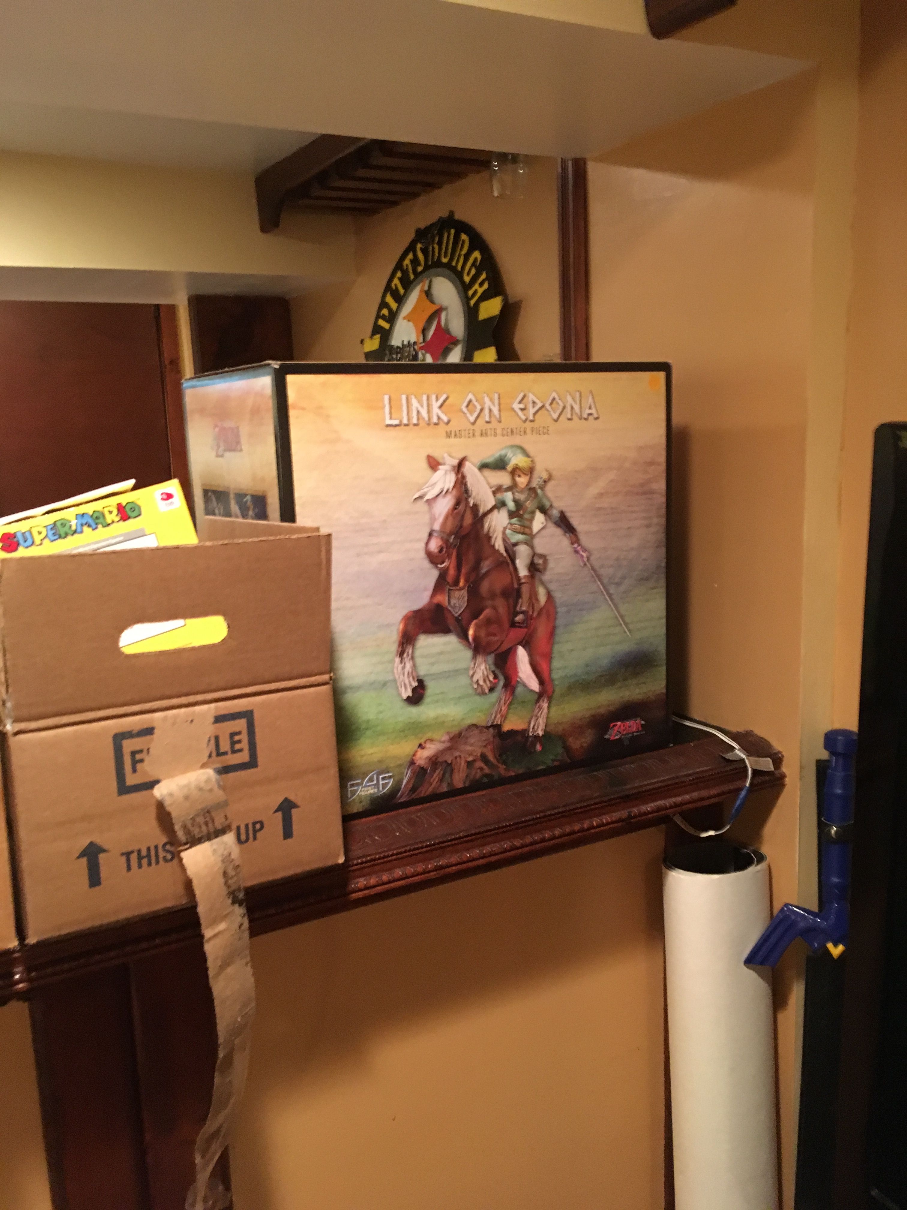 So now that I had all 3 of my “modern” consoles up and running, I just needed to figure out what to do with the other shelves. The top shelf looked perfect for my F4F Samus statue, so that’s where she’s going to be living I think. It looks great, and I can’t imagine anything else of use going up there. I still need to figure out a home for my Link on Epona statue, but I’m sure a solution will present itself over time.