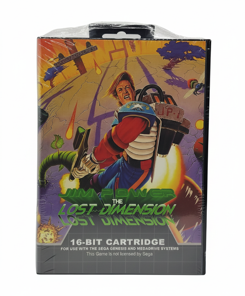 Jim Power is a shoot'em up game similar to Mega Man, Turrican, Contra and the like. There is a bit of a split story of the game, as two different versions were made that share the same enemies, bosses, level designs, and soundtrack. In Jim Power Mutant Planet, Jim Power is sort of John MClane type detective, which is called in to rescue the president's daughter who has been captured by an evil monster and taken to Mutant Planet. In Jim Power in Lost Dimension, which portrays Jim Power as an Intergalactic Soldier, Jim travels to a 5th dimension to stop an evil monster called Vaprak from invading and destroying earth. The Game Soundtrack features rocking music composed by Chris Huelsbeck (Turrican, Gemx, Apidya, Tunnel V1)